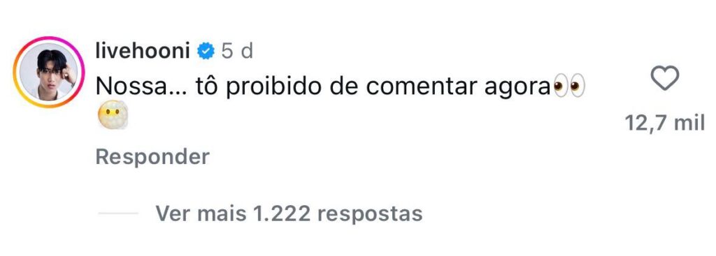 “Nossa… tô proibido de comentar agora”, escreveu ele, usando emojis.